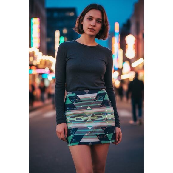 Express Skirt Women's XS Teal & Peach Aztec Print Sequin Mini Boho Lot of 2