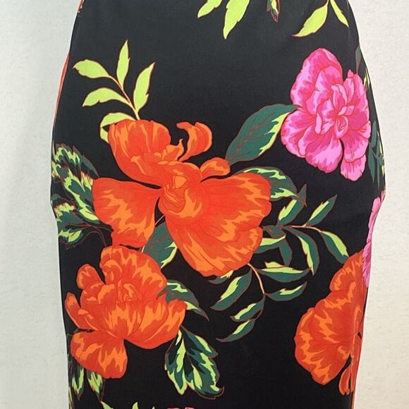 Express Skirt size Small Black Pink Orange Floral Straight Pencil Knee Stretch