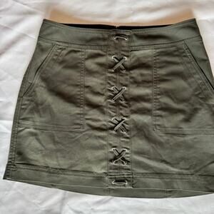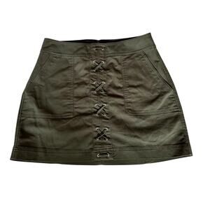 Express women’s mini skirt, size 8. Features lace-up front detail, utility-style pockets, and zip back. Perfect for casual chic looks or dressed up with boots.”