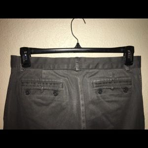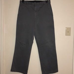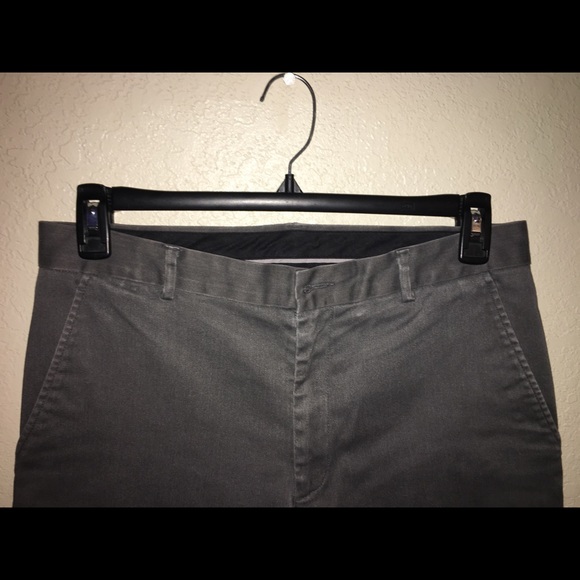 Dark grey Express slacks. Men’s size 34x30. The waistline fastening button is missing but there is a replacement button on the inside of the pants that can easily be sewn on (pictured). Selling them dirt cheap for that reason!