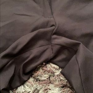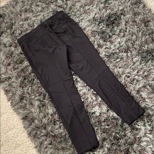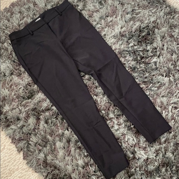 Skinny and form fitting. Mid rise and falls right along your ankle. Needs to be hemmed at the bottom
