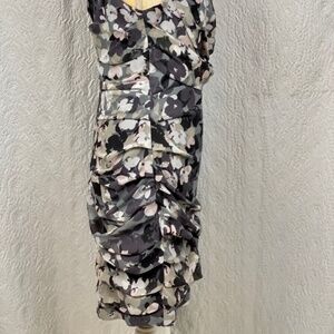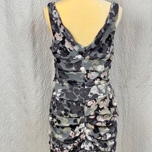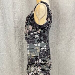 Express Sleeveless Floral Print Ruched Draped Mini Dress