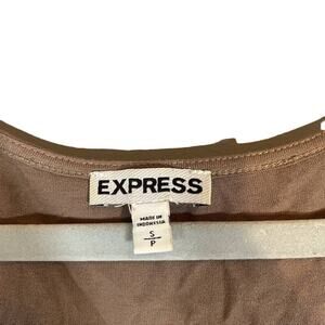 Hashtags: #ExpressFashion #SleevelessTop #RuchedBlouse #DottedTop #ScoopNeckTop #BrownBlouse #WomensFashion #ChicStyle #CasualOutfit #TrendyTop #FashionEssentials #FlatteringFit #SummerTop #StylishWomen #VersatileTop #WardrobeStaple #ElegantStyle #CasualChic #FashionForward #SimpleAndStylish #ExpressApparel.