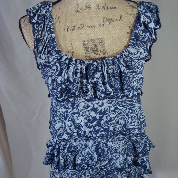 Express Sleeveless Tank Top Ruffles Stretch Blue Size Small