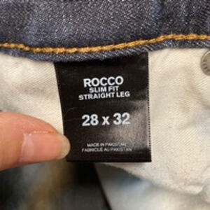 Featuring a slim fit through the seat and thigh, these jeans have a straight leg opening for a timeless look. The dark wash adds an edgy touch that can easily be dressed up or down. With a size of 28 x 32, they are tailored to fit perfectly and provide ultimate comfort throughout the day.