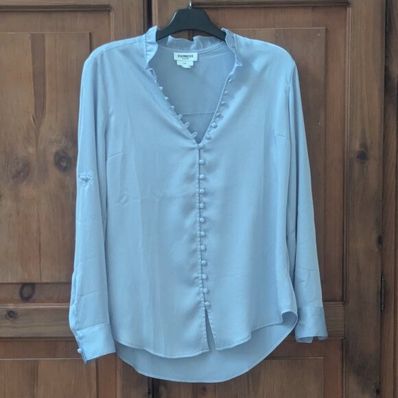 Express Slim Ruffle Covered Button Portofino Shirt in Slate Blue Size Small