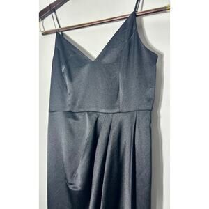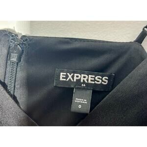 EXPRESS Dress Formal Sweep Drape Front, V-Neck, Adjustable Spaghetti Straps, Tulip Hem, Black, Size 0.