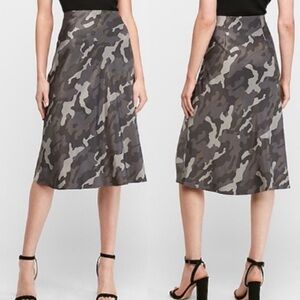 Express Slip Skirt Grey Black Camo Print Medium Midi Bias Cut