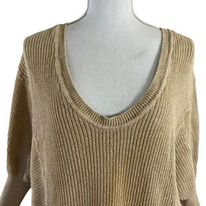 Express Slouchy Short Sleeve Sweater Tan Sand Oatmeal Knit Balloon Sleeve Medium