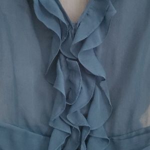 Express, Small, Ocean Blue Ruffle Blouse