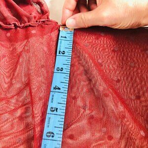 Express Small Petite Sheer Maroon Lacy Top Ruffled Bell 3/4 Sleeves Spotted