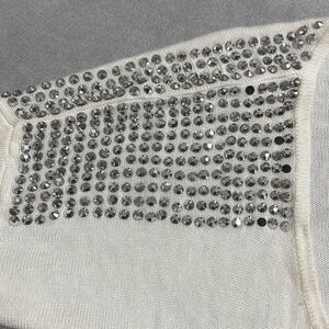 Express Small White Rhinestone Embellished Shoulders Scoop Neck Knit Top Bling