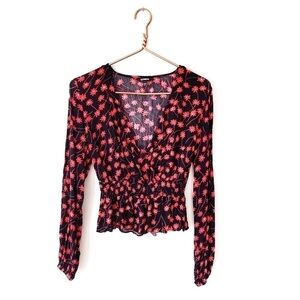 Express | Smocked Surplice Floral Shirt XS