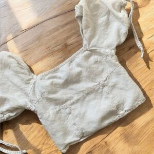 Express Smocked Cropped Peasant Top Extra Small XS Linen