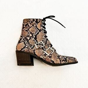Express Snakeskin Patterned Faux Leather Double Buckle Combat Boot Size 8
