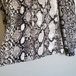 Express Snakeskin Print Crew Neck Long Puff Sleeve Top Black/White Size Women's XS Keyhole Back