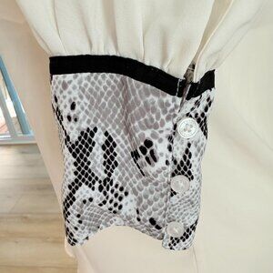 Sophisticated with a bold edge π β this Express blouse features striking snakeskin-print trim at the neckline and cuffs, adding a statement twist to a classic silhouette. The soft ivory fabric drapes beautifully and feels smooth with a slightly silky texture. Perfect for elevating your work-to-weekend style.