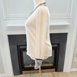 Sophisticated with a bold edge ๐ โ this Express blouse features striking snakeskin-print trim at the neckline and cuffs, adding a statement twist to a classic silhouette. The soft ivory fabric drapes beautifully and feels smooth with a slightly silky texture. Perfect for elevating your work-to-weekend style.