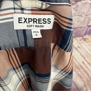 Express Soft Wash Blue Check Button Long Sleeve Shirt