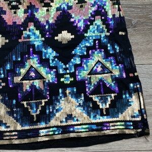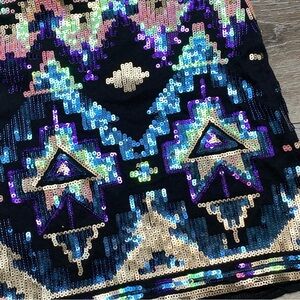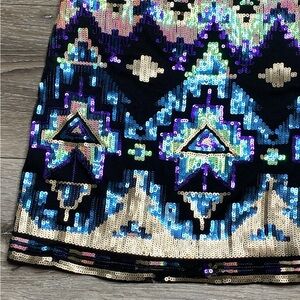 Express Women’s Multicolor Southwestern Aztec Embellished Sequin Mini Skirt Size XS Above The Knee