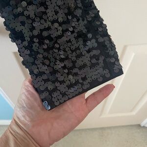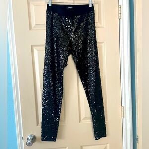Dazzling black sequin pants by Express. Ideal for evening events. Straight leg with a great waistband! Smoke free environment.