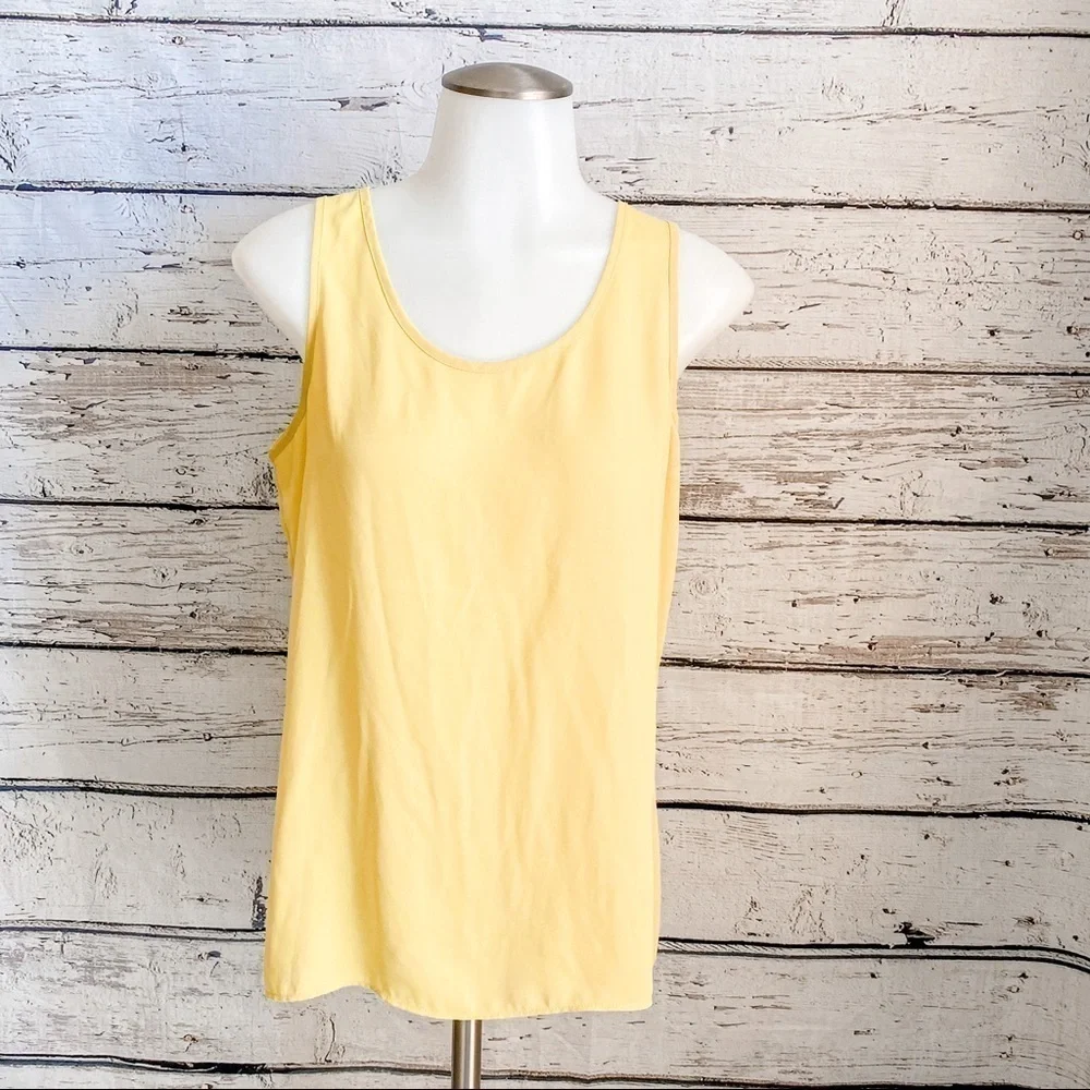 Express Split-Back Yellow Tank. Please note that it’s more mustard yellow than neon yellow. Having a hard time getting the color on the photo to pop out