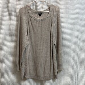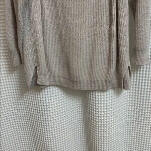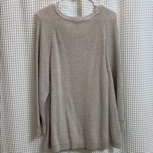 Heathered oatmeal color. 32” from shoulder to back hem. Split hem design. Gently used. Square-ish style neck.