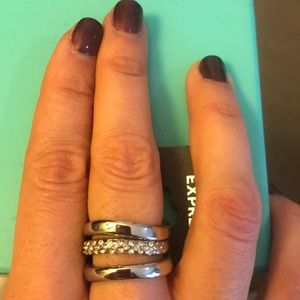Express Stackable 3 piece Silver Ring with rhinestones on one piece. New with Tags. Size 7