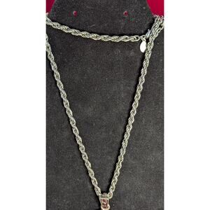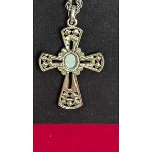 The Express Statement Cross Necklace features a red rhinestone cameo pendant on a rope chain, making it a bold and eye-catching accessory. The cross pendant adds a religious touch to the design, while the vibrant red color of the rhinestone adds a pop of color to any outfit. This necklace is perfect for those looking to make a fashion statement with a piece of jewelry that is both stylish and meaningful.