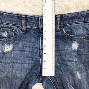 Super cute pre-owned Express Stella Skinny Leg Destructed Jeans Size 4. Fits on the smaller side of size 4, like a 2-4. If you are closer to a 6 these will not fit you. Check measurements. Very destructed and well loved but tons of life left! Please ask all questions before purchasing.