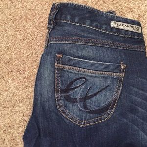 Decorative stitch detail on front and back of jean. Medium wash, 32 1/2" inseam, 18" leg opening.