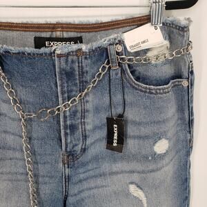 Express Straight Ankle Jeans 8 High Rise Waist Distressed Chain Raw Hem Blue NWT
