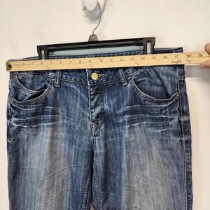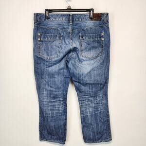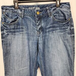 Express Straight Jeans Womens Size 12 34x26 Whiskered Button Fly Steampunk 2009
