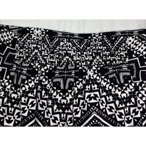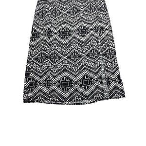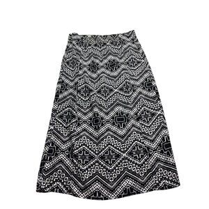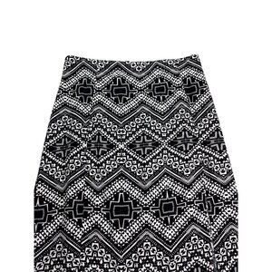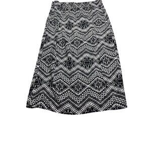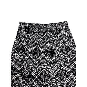 Express Straight Midi Skirt Black White Geometric Pattern M Side Slit Smocked