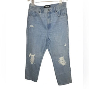 Express | Straight Super High Rise Size 8 Distressed Crop Denim Jeans Size 8
