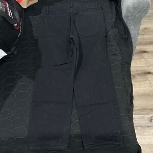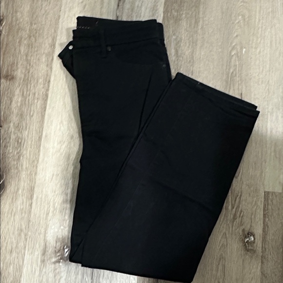 Like new. Solid black straight-leg high rise pants. Classic five-pocket styling with belt loops and zip fly. Clean, versatile wardrobe staple.