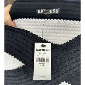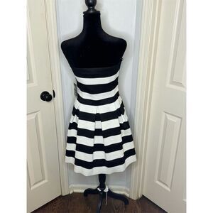 Express Strapless Black & White Striped Fit & Flare Dress Size L Knee Length