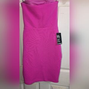 Chic strapless dress by Express. Vibrant pink hue. Perfect for parties. Loved this dress but never worn it! Now it's too small for me. It's a size zero, but the material stretches some. It's a mini dress but not too short at all.. regular $69