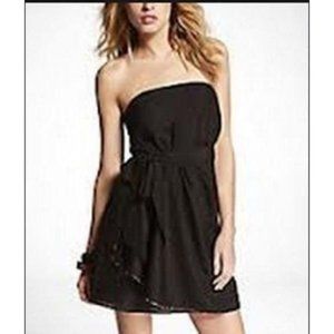 The strapless neckline boldly bares your skin, but provides just enough coverage. Pleated skirt has a wrap effect that reveals a hint of contrast fabric as you move.