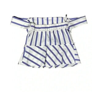 Express Stripe Blue White Off The Shoulder Peplum Hem Blouse Size 6