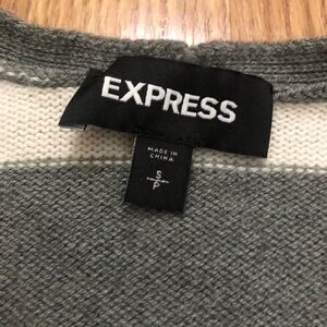 Like new and in great condition. Express Gray, white and yellow long sleeve v neck sweater. Comfortable and super soft! 60% acrylic, 40% nylon. Flawless, like new.