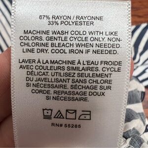 Cute lightweight blouse from Express. White with navy blue stripes. Slightly cropped, hits right at or above waistline with elastic hemline so you can pull it up and make it more cropped and blousy if you prefer.