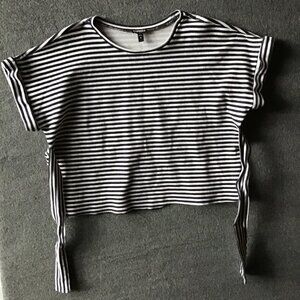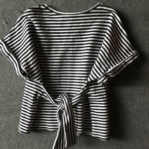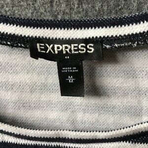 Express Striped Tie Back Navy and White Heavy Knit Short Sleeve Blouse Shirt Sz M. Cotton/Nylon Spandex Blend. Very well made thick knit shirt. Midnight Blue and White stripes.