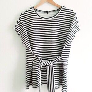 Express Striped Tie Waist Black & White Cotton Blend Blouse Size Medium