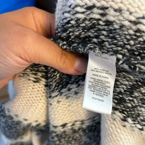 Pre owned excellent condition. Worn a handful of times. Really nice, thick and warm ruffle cardigan. This is a heathered charcoal and white striped sweater. Women's size XS.