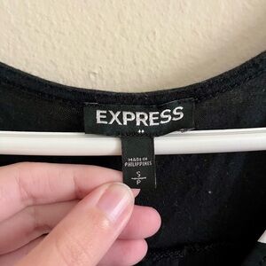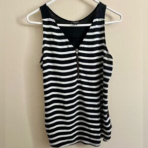 Express brand tank size small. Tank is striped with a zipper up the chest. Zipper has some wear as shown. Back of the tank is solid black. In good used condition.