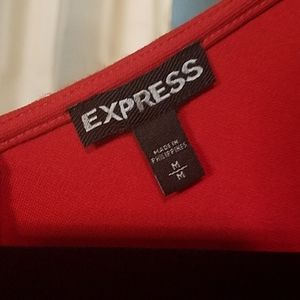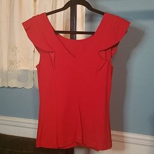Red structured top with flutter sleeve and V-back from Express. Size Medium. Some slight discoloration, shown in photo.