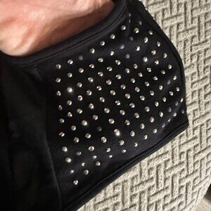 Black shirt dress, with studded shoulders. Can be worn as dress or with leggings/skinny jeans.