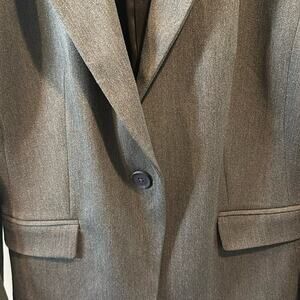 New without tags (NWOT) Express Studio Stretch one-button blazer jacket. Women’s size 14. Blazer is a heathered charcoal darkgray colorway that can be paired with nearly any career wear blouse and slacks. Shoulders do have some padding to elevate the look, very classic and timeless piece, a closet staple for a career woman. Jacket has black lining on interior. Single charcoal button closure in front can be worn open or closed and sleeves have button details as well, also in charcoal.