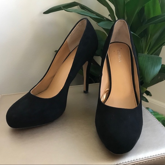Black Suede Heels from Express. 3.5 inches with slight platform at the front. Used but great quality, only signs of wear is on the heel!